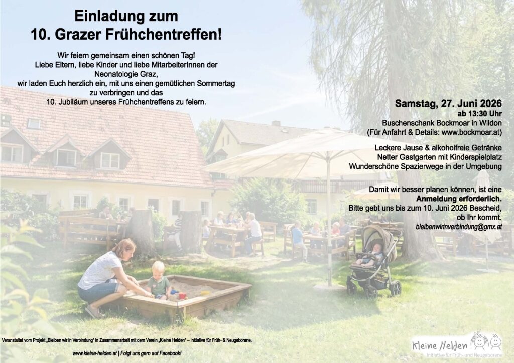 Alle Eltern von (ehemaligen) Frühchen sowie auch alle MitarbeiterInnen der Neonatologie Graz sind herzlich willkommen.